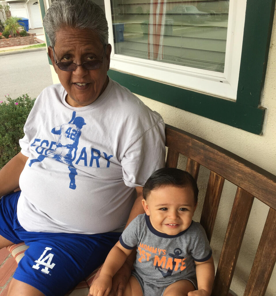 On the other hand, my husband is a HUGE Dodgers fan! His father (pictured with our son Diego) passed away 5 years ago but he was also a huge Dodgers fan!