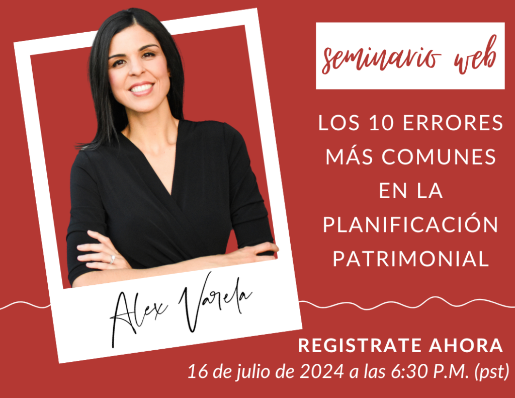 En este seminario web, compartiré los errores de planificación patrimonial más importantes que he visto y, lo que es más importante, cómo evitarlos. ¡No pierdas esta oportunidad de aprender cómo asegurar tu futuro!